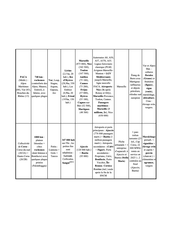 - Thèmes : géographie physique, économique, sociale, politique etc. des littoraux français